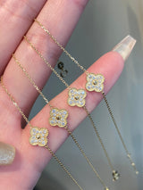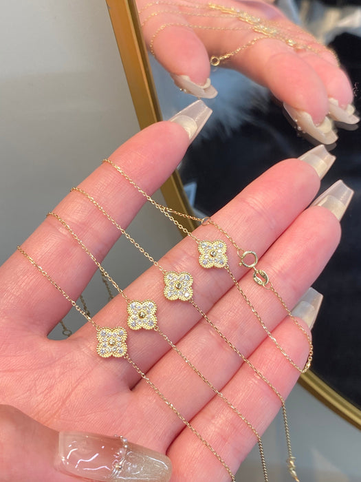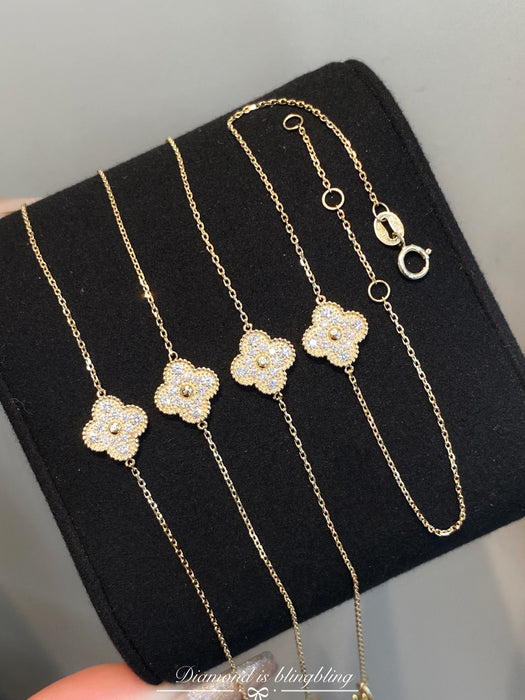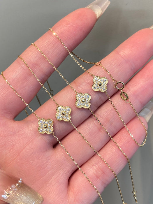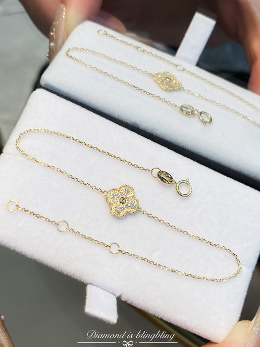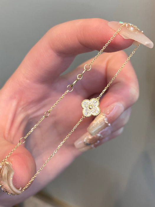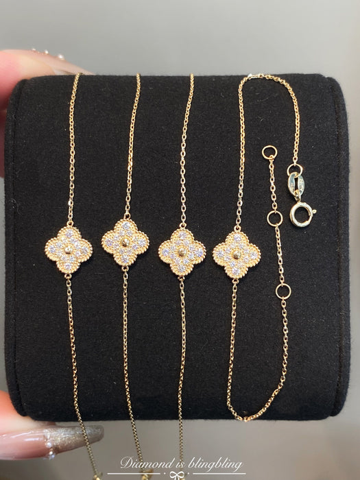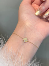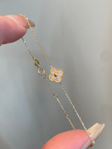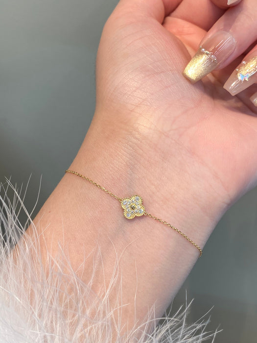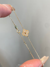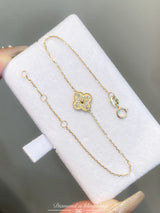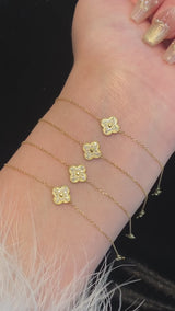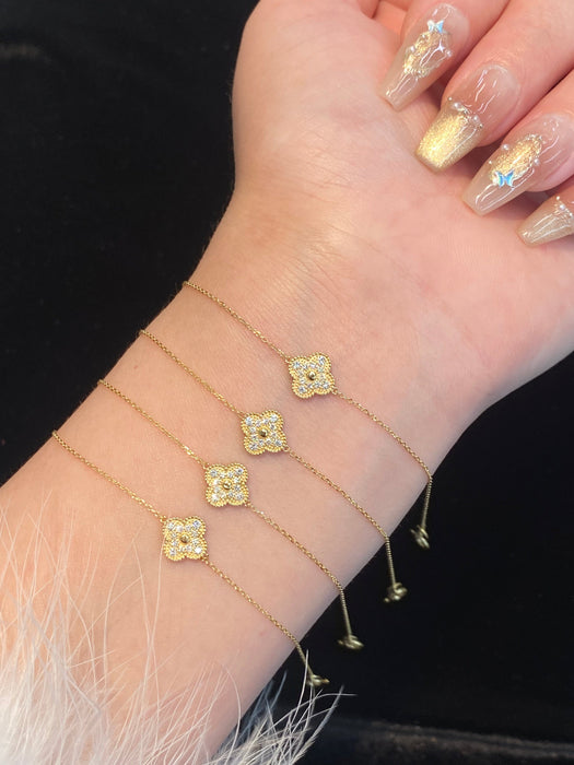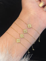 18K Yellow Gold Solid Gold Clover Bracelet with 0.15 carat Natural Diamonds