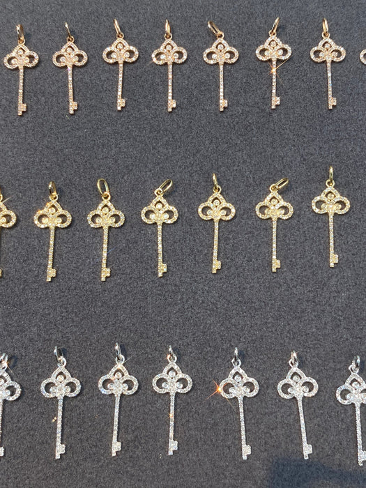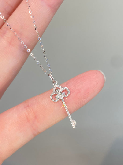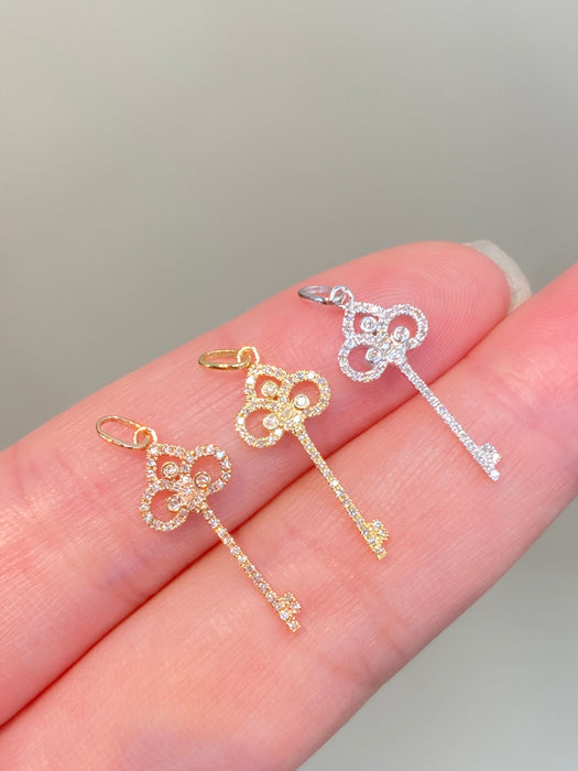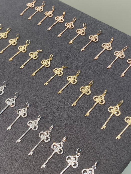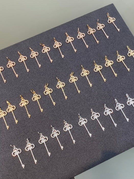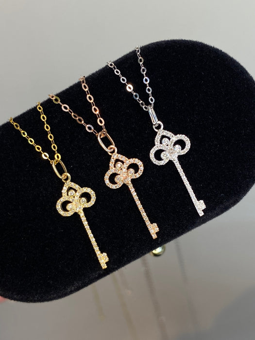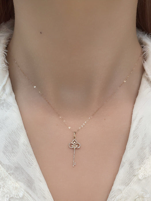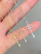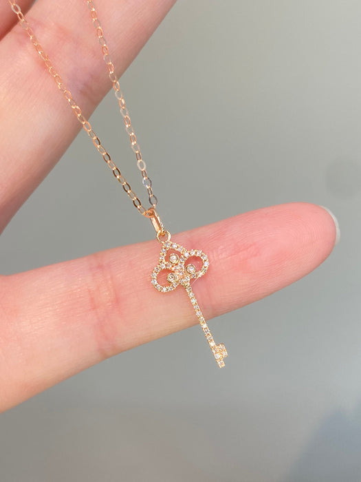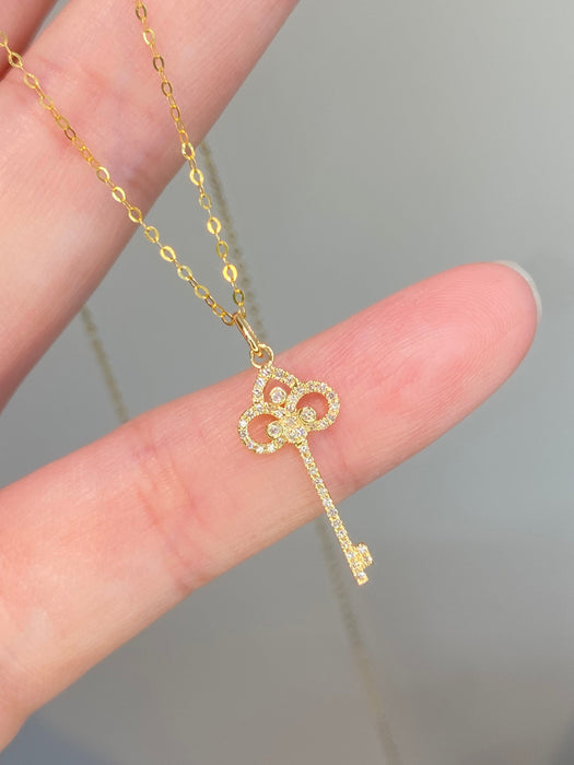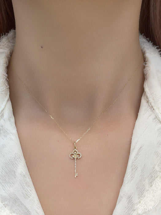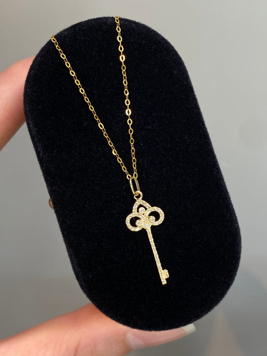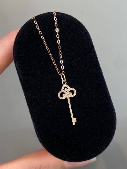 18K Gold Solid Gold Key Necklace With 0.2 carat Natural Diamonds