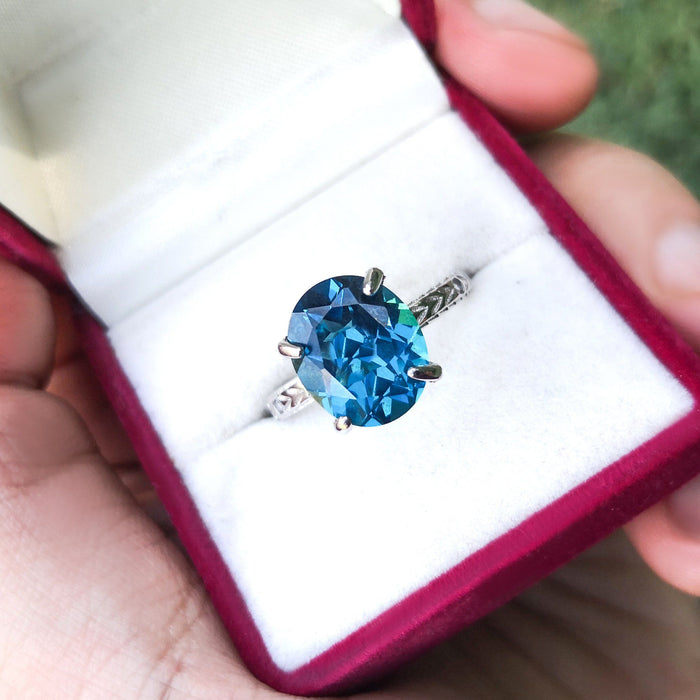 From the Solaris Collection, Heaven's Depth shines with a celestial blue oval stone, framed in elegant mid-century style. Capture the beauty of the night sky around your fingers.
